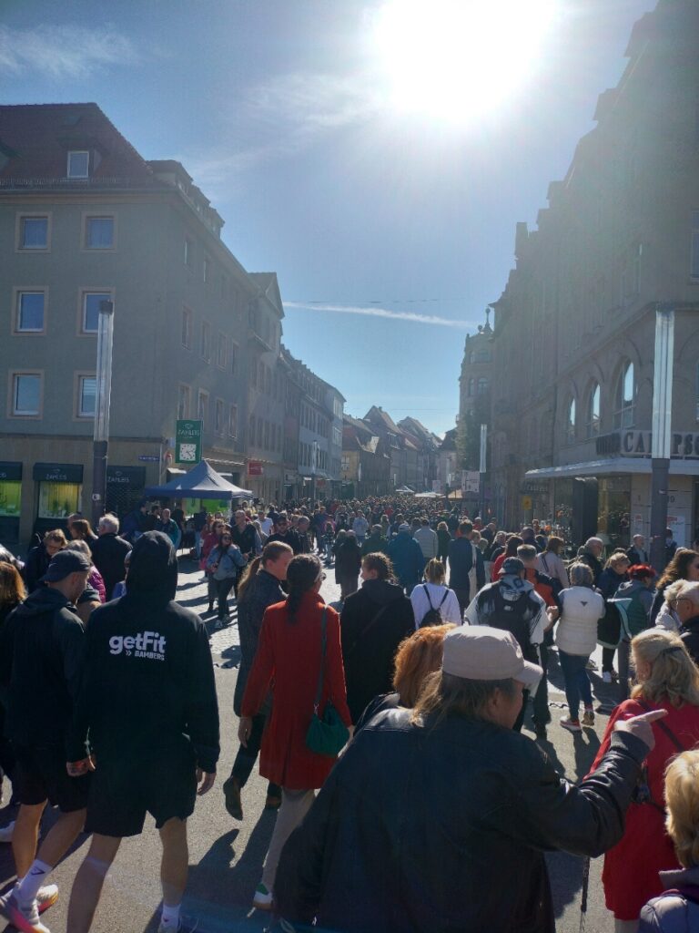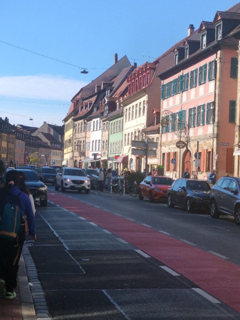 After a 40-min train ride we reached Bamberg station. The city felt busier as soon as we exited the station. A 10 min walk on the Luitpold Strasse – the main street right in front of the station, took us to the Luitpold Bridge (Bruke). This is one of the many bridges across the Main Danube canal. It is the same Canal which passes next to my house in Erlangen.