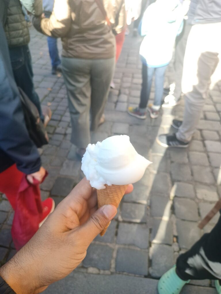 After enjoying the view for some time we decided to walk down. On the way, we found an ice cream stall. I had never had a lemon flavored ice cream. So, I gave it a try. It was essentially frozen lemonade. It was too sweet for my liking.