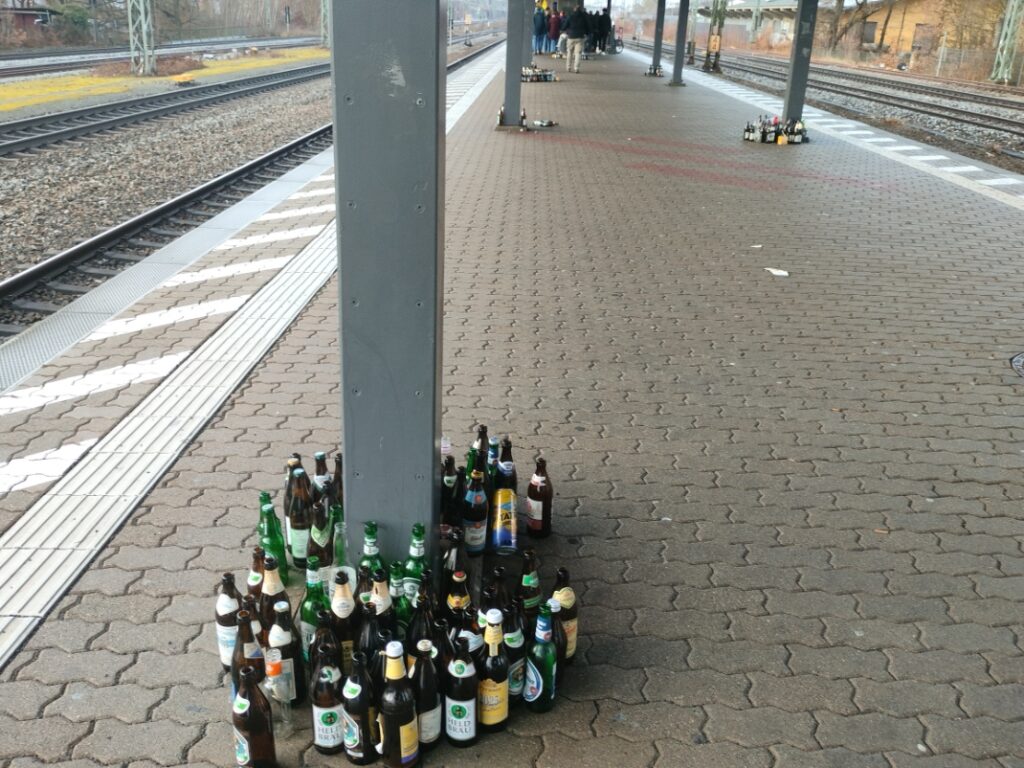 First thing we noticed after getting down at the train station was LOTS of bear cans! Apparently, people enter the stadium half drunk so that you don’t have to pay for expensive beer at the stadium.