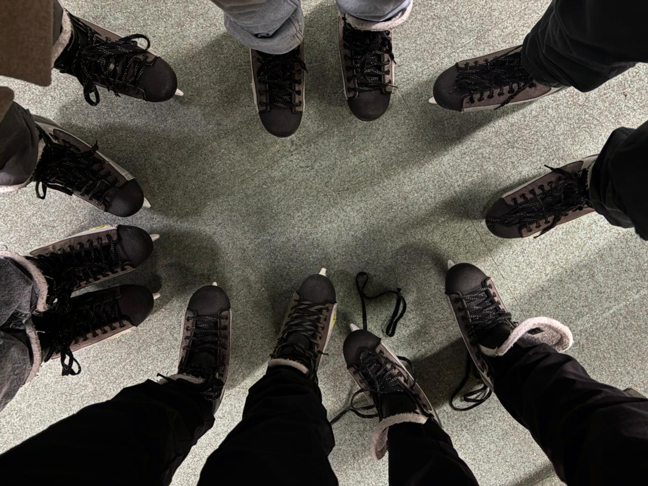 The fun began as soon as we wore the skates. The first challenge was to stand on that blade even to reach the rink. It was challenging but easier than we thought. All of us could easily stand and balance on it. For most of us, it was the first time on skates.